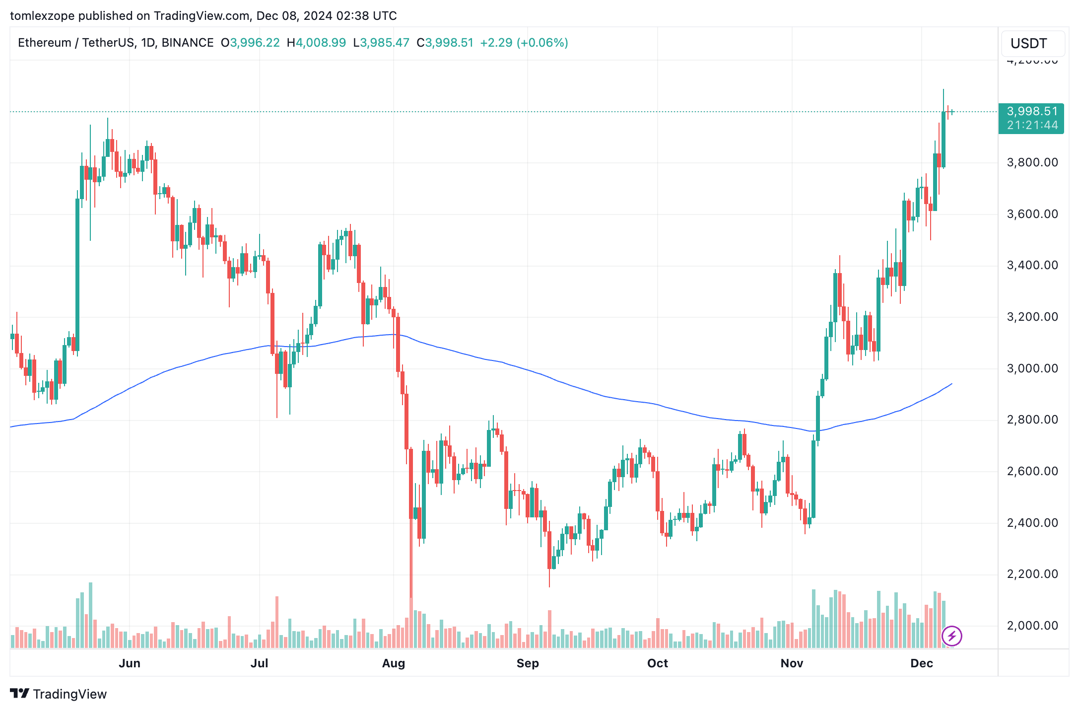 Mirroring the current market climate, the Ethereum price has not exactly impressed this weekend, as it struggles to hold above $4,000. Nevertheless, a prominent analyst on the social media platform X believes the price of Ethereum looks primed to return to its all-time high of the last cycle.