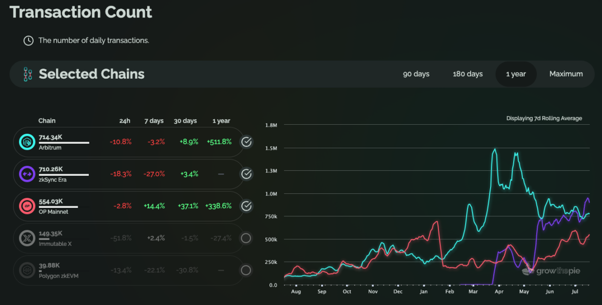 This increase in the user base, as well as the launch of more projects in ZkSync Era, has fueled the increase in daily transactions, which at the time of the writing are surpassing 700K per day.