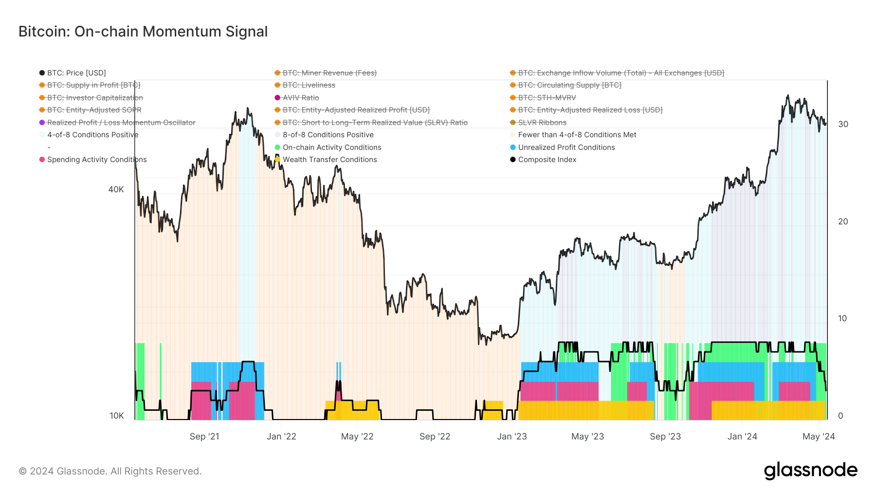 - Market Momentum: Currently, Glassnode's composite momentum index is indicating a market cool-down. Several key metrics have entered downtrend phases, suggesting reduced demand and slowing positive momentum.