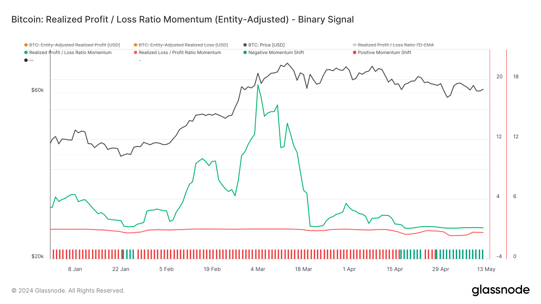 - Realized Profit / Loss Ratio Momentum: A shift towards negative momentum in this metric highlights that realized losses have accelerated during recent market corrections. This increase in losses for recent coin purchasers could potentially trigger a panic sell-off if the market continues to correct.