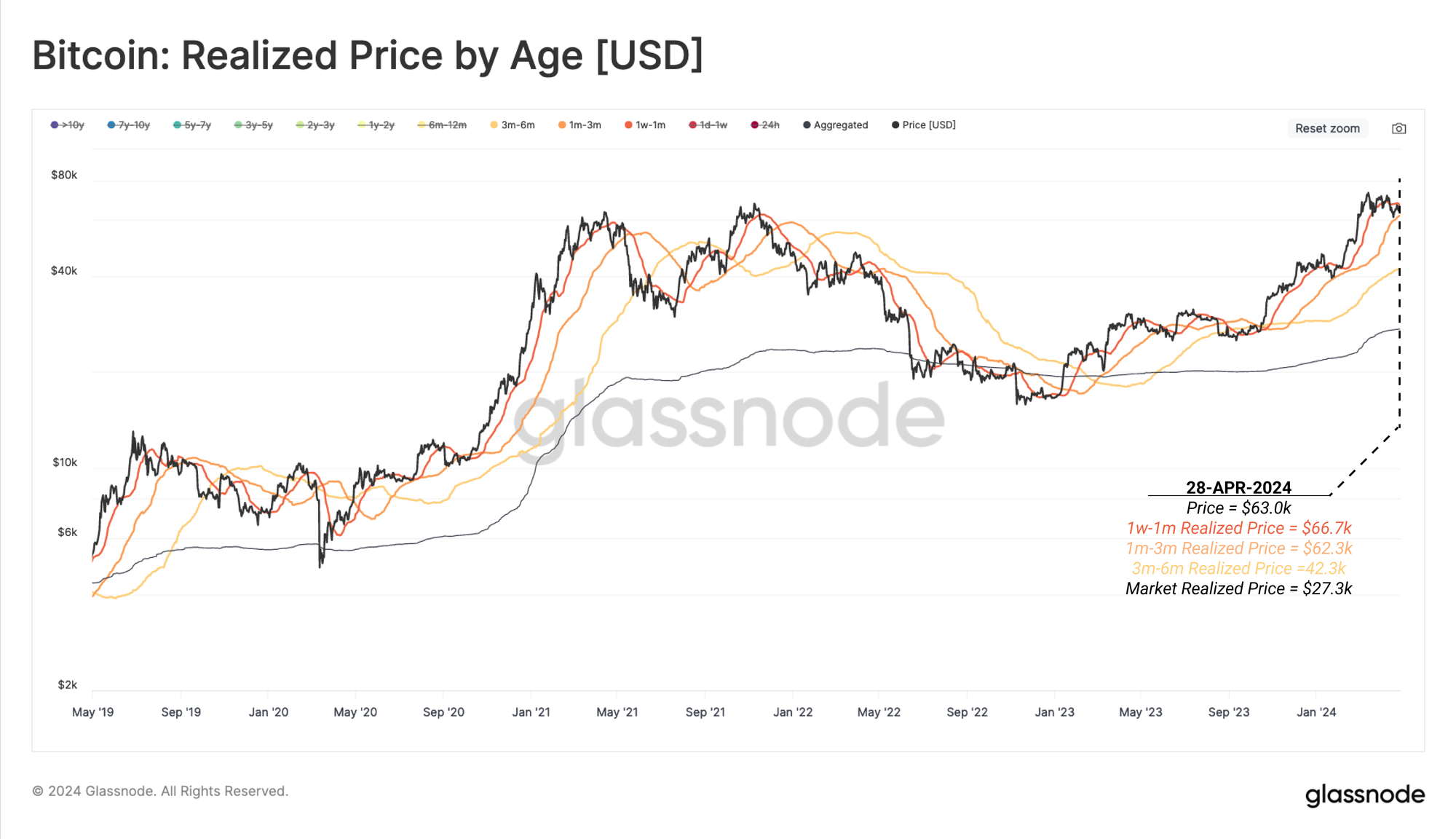 In the last week of April, the Bitcoin market settled into a phase of consolidation following the halving event. Prices ranged between $60k and $66.7k after the March peak of $73k. During this period, sell-side pressure intensified as short-term holders (STHs), particularly those who bought BTC within the past 1-6 months, dominated realized losses.