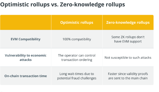 There are two main rollup types: Zero-knowledge rollups (ZK-rollups), which use cryptographic proofs to validate transactions, and optimistic rollups (OP-rollups), which assume transactions are valid by default and rely on fraud proofs to detect and correct invalid transactions post-submission.