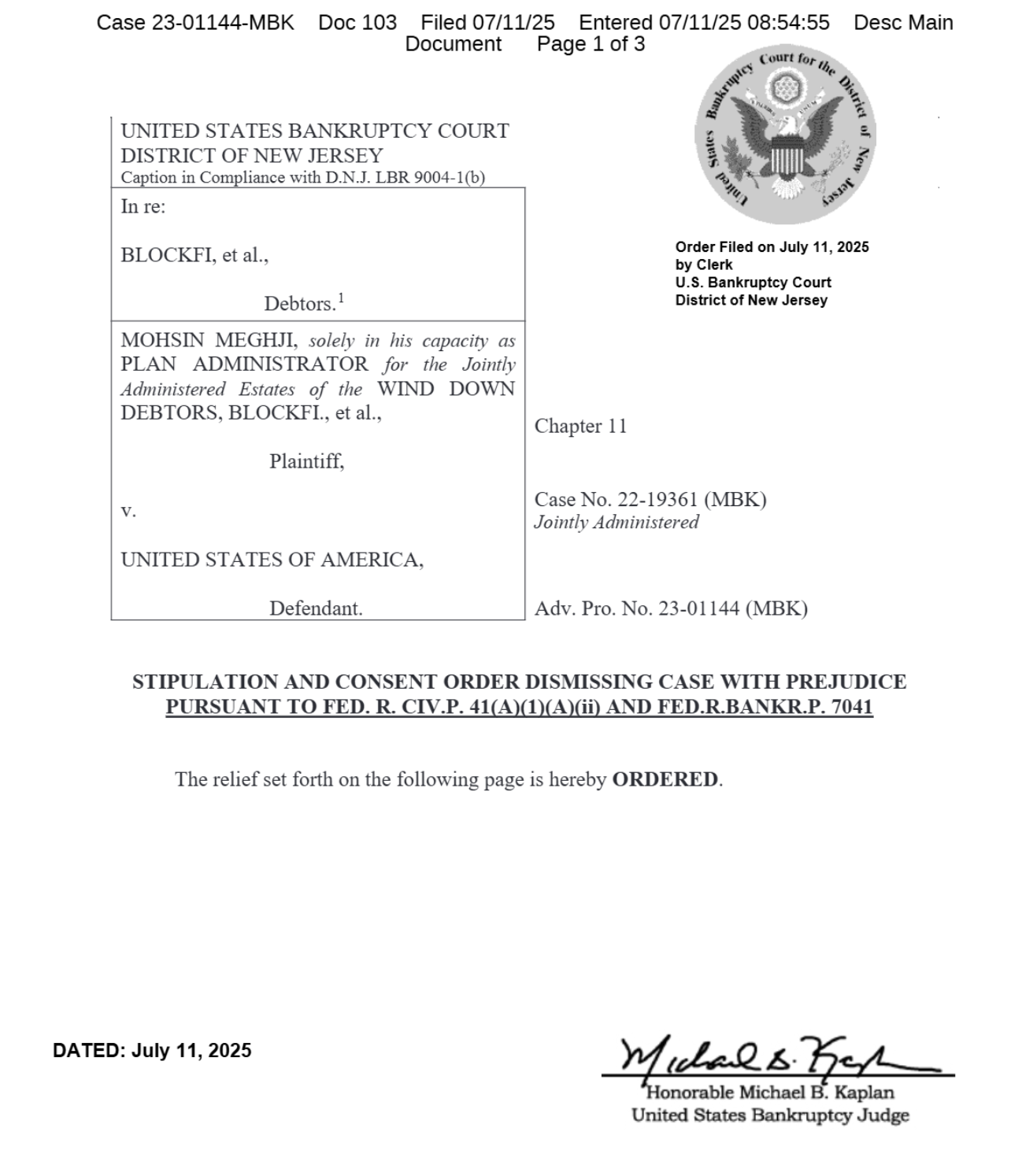 The administrator overseeing BlockFi’s bankruptcy wind-down and the US Department of Justice (DOJ) have reached a settlement to dismiss a $35 million crypto asset transfer lawsuit involving the crypto lender.