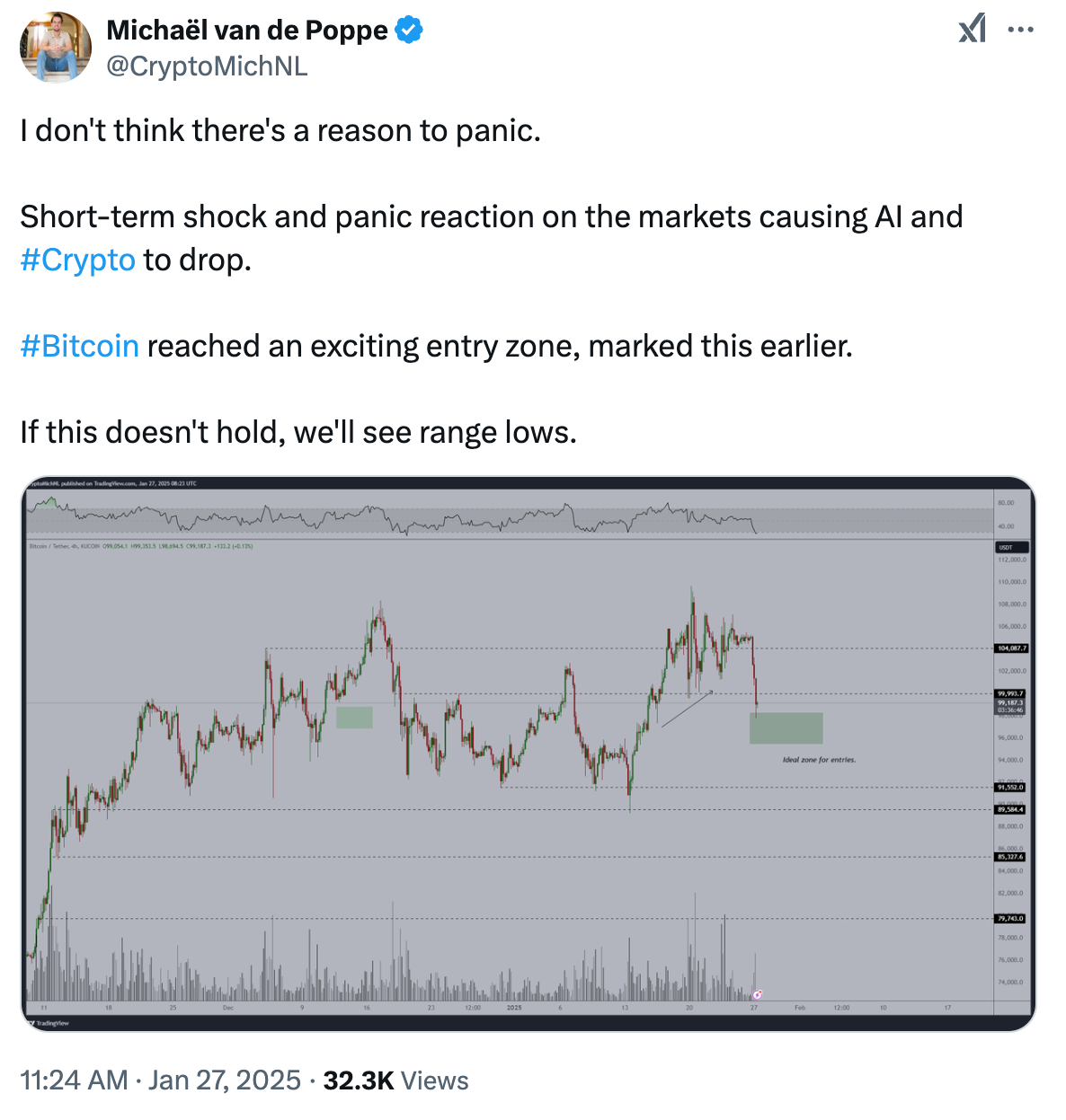 According to van de Poppe, the area between $99,000 and $98,000 is an “exciting entry zone” for Bitcoin investors.