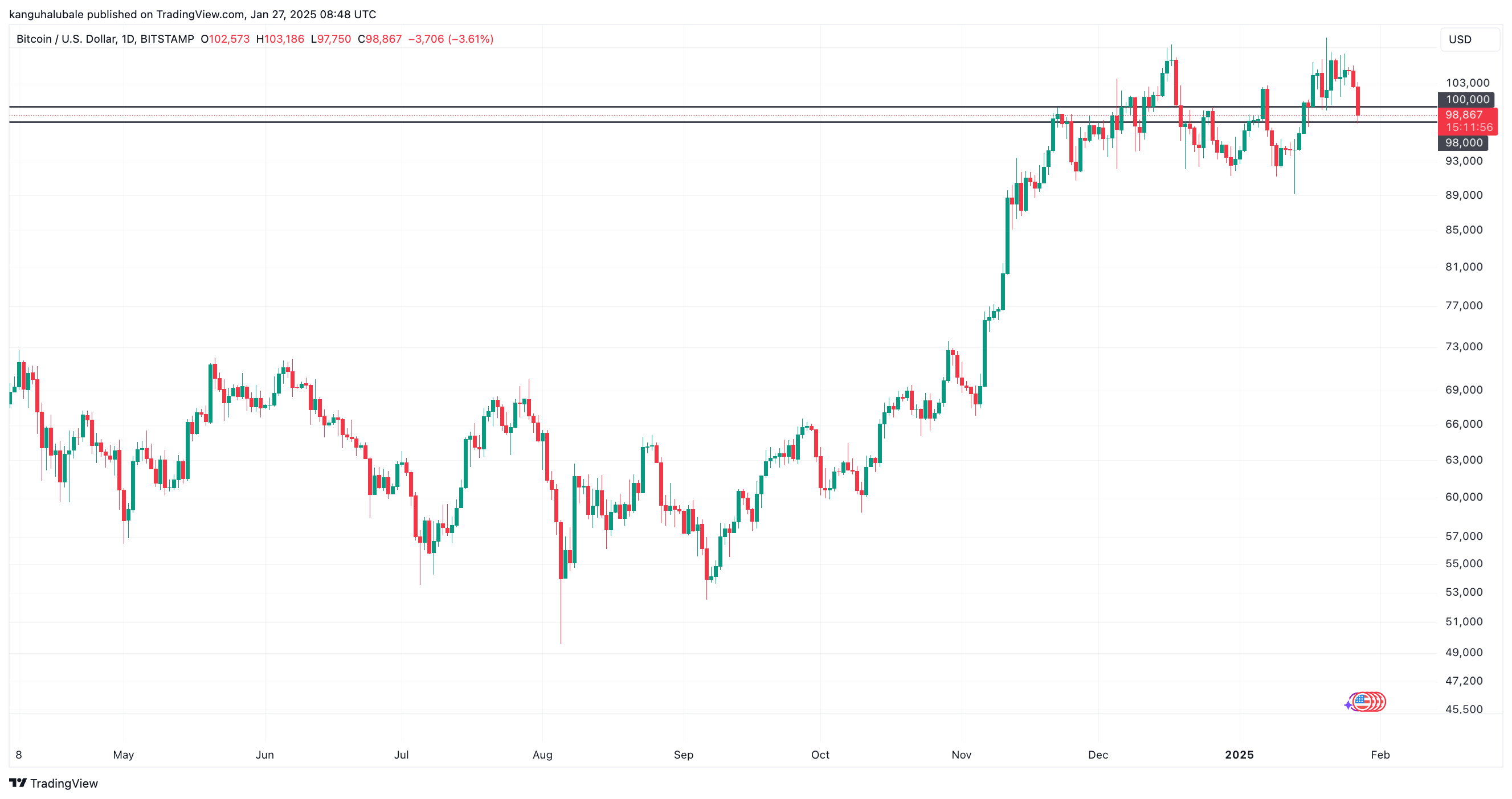 Related: Bitcoin falls below $100K for the first time under Trump presidency