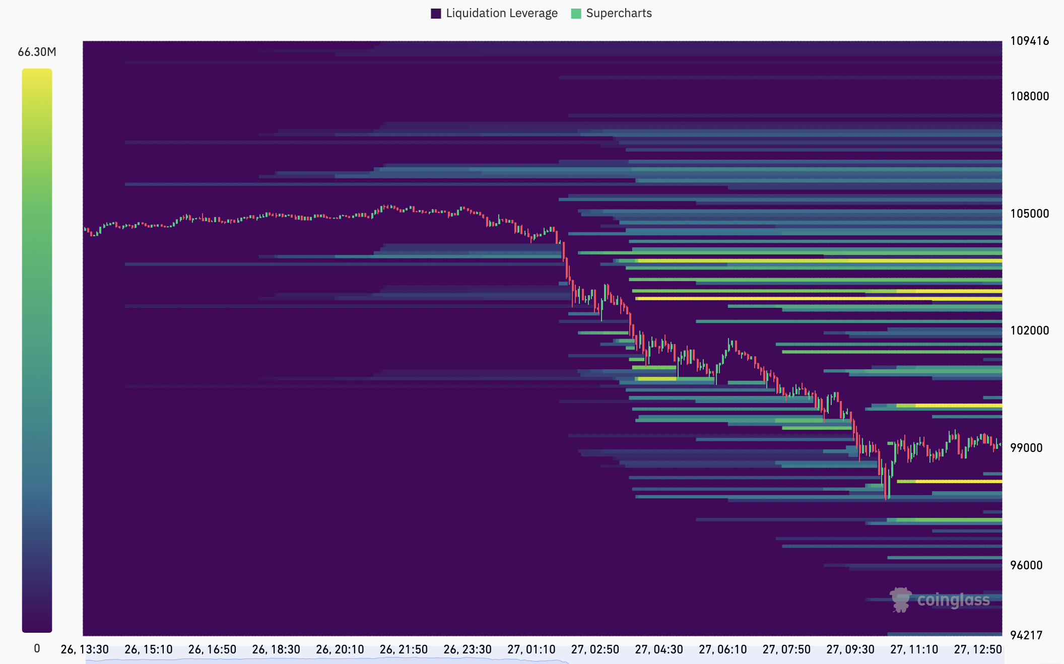 The importance of the 50-day EMA was reinforced by significant liquidity building up just above the $98,000 support level, as shown by data from CoinGlass.