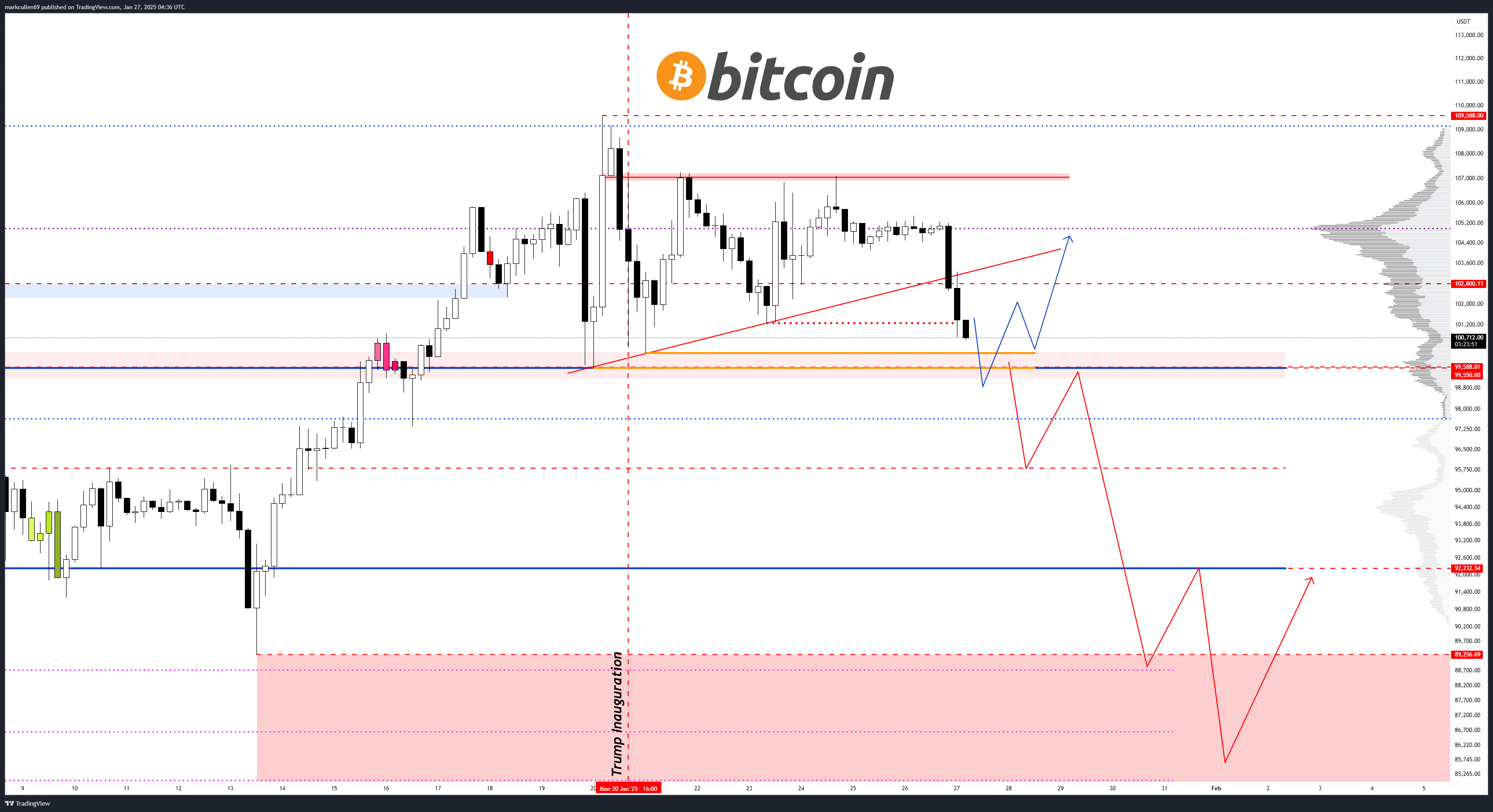 “Bitcoin price approaches the $100,000 level and is looking weak!” said Bitcoin analyst AlphaBTC in a Jan. 27 post on X.