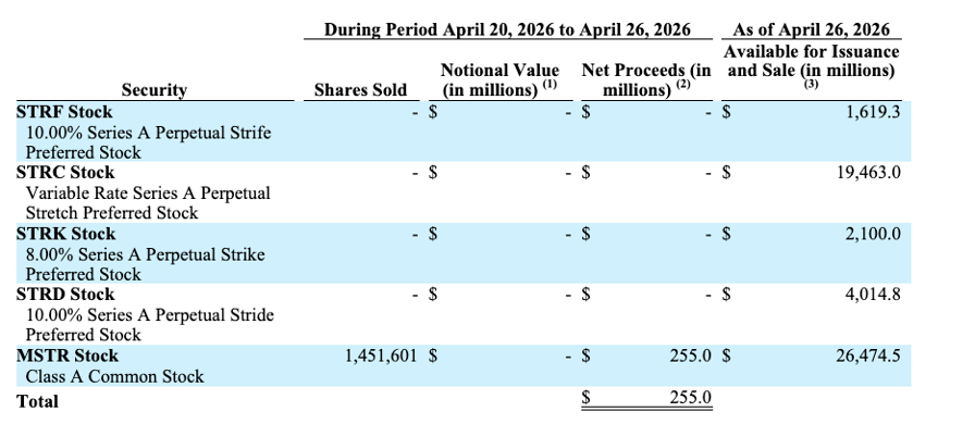 According to the SEC filing, the purchase was funded entirely through Strategy’s Class A common stock (MSTR), which sold 1.45 million shares and raised $255 million.