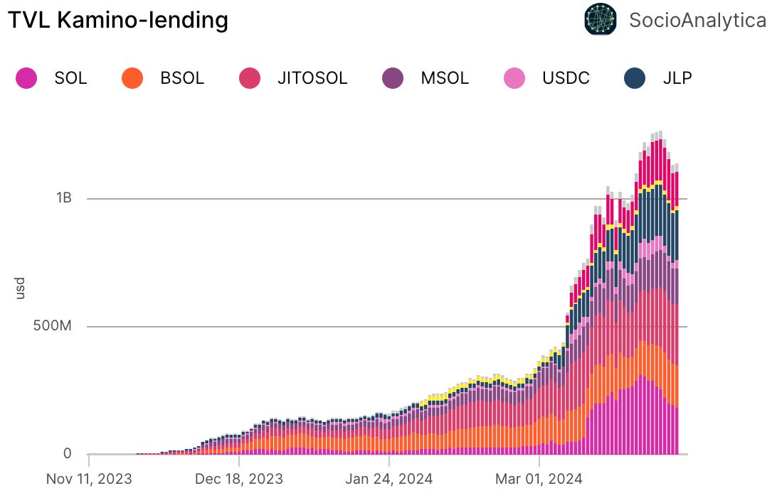 - Kamino is a Solana DeFi platform that combines lending, liquidity, and leverage products in a single unified platform. Today on Kamino, users can borrow and lend assets, provide leveraged liquidity to concentrated liquidity DEXs, use concentrated liquidity positions as collateral, build their own automated liquidity strategies, boost yield by using leverage, and go long or short certain assets. Kamino's TVL crossed $1B on Mar. 14, 2024 and currently stands at $1.2B, making it the largest lending protocol on Solana.