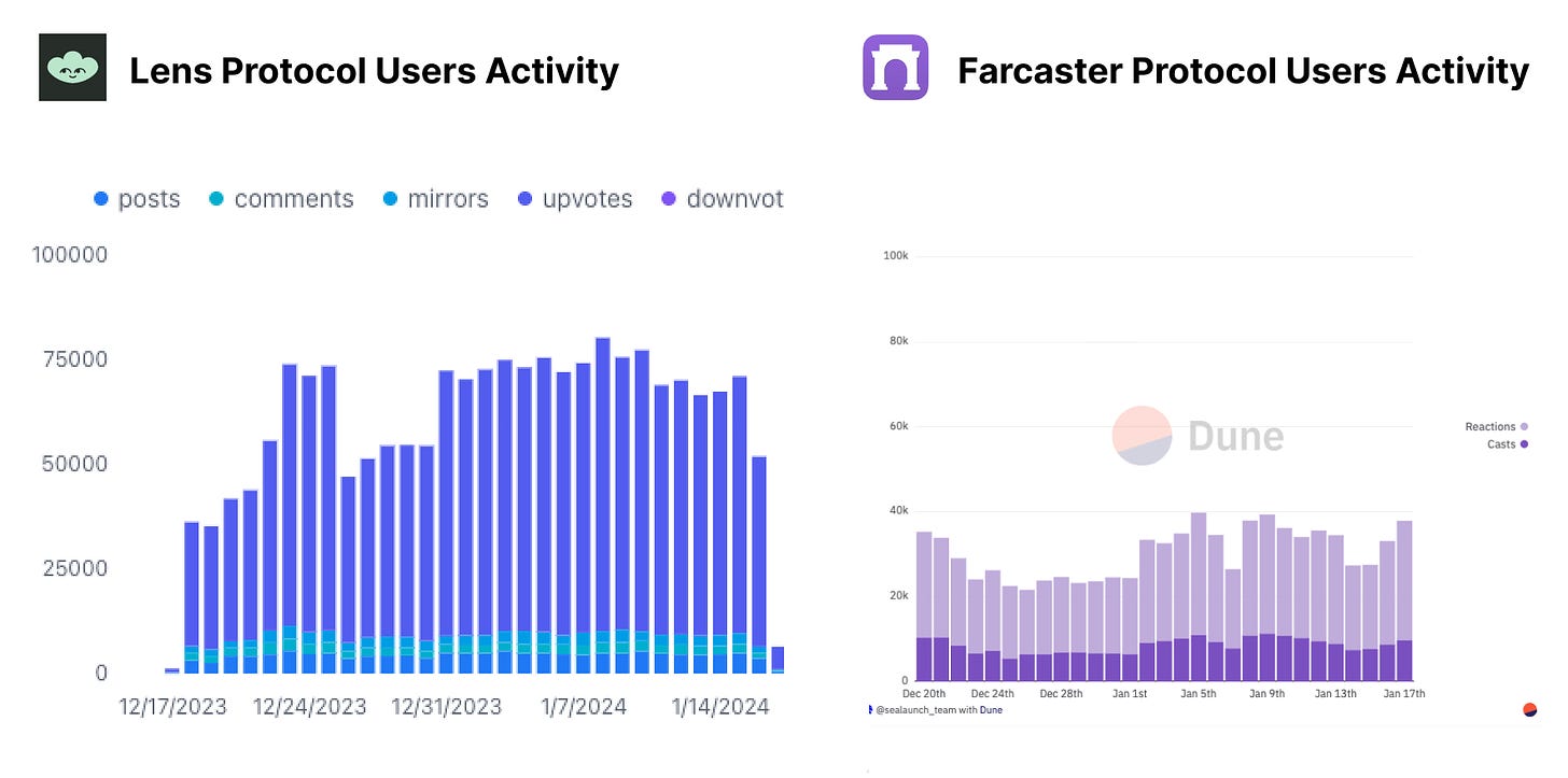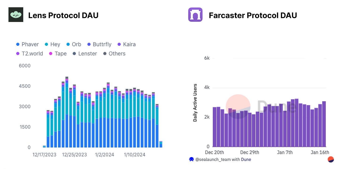 📈 Daily Active Users reach 8k+ on major social protocols Lens and Farcaster
