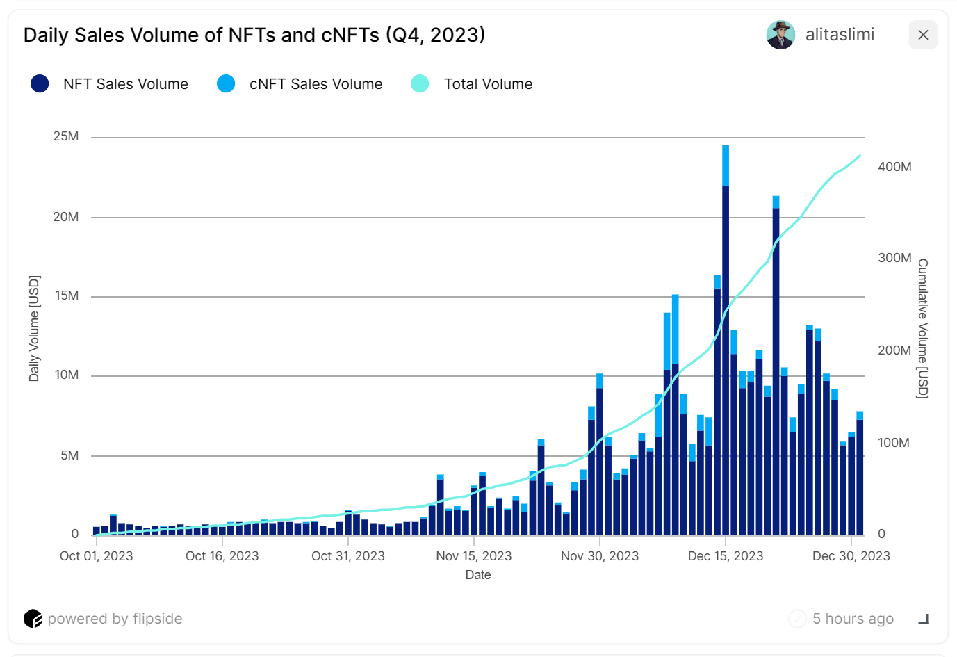📈 The NFT sales volume on Solana crossed $400M in the last quarter of 2023