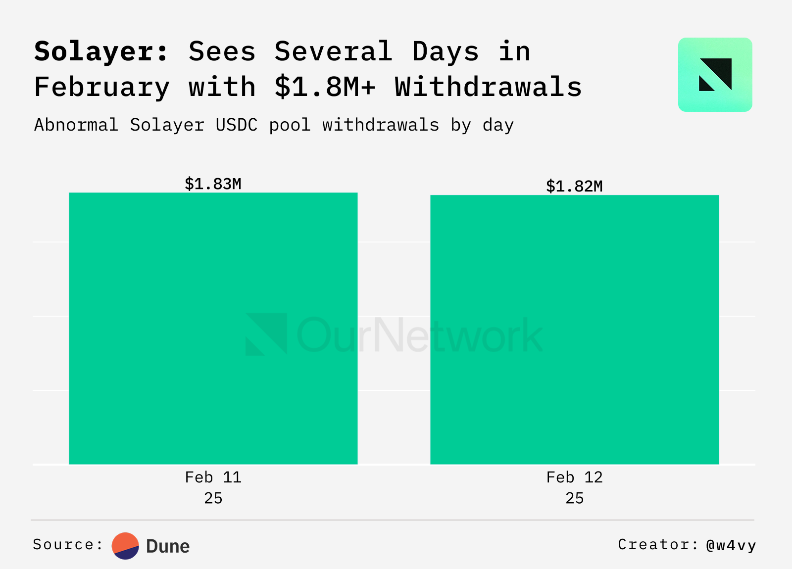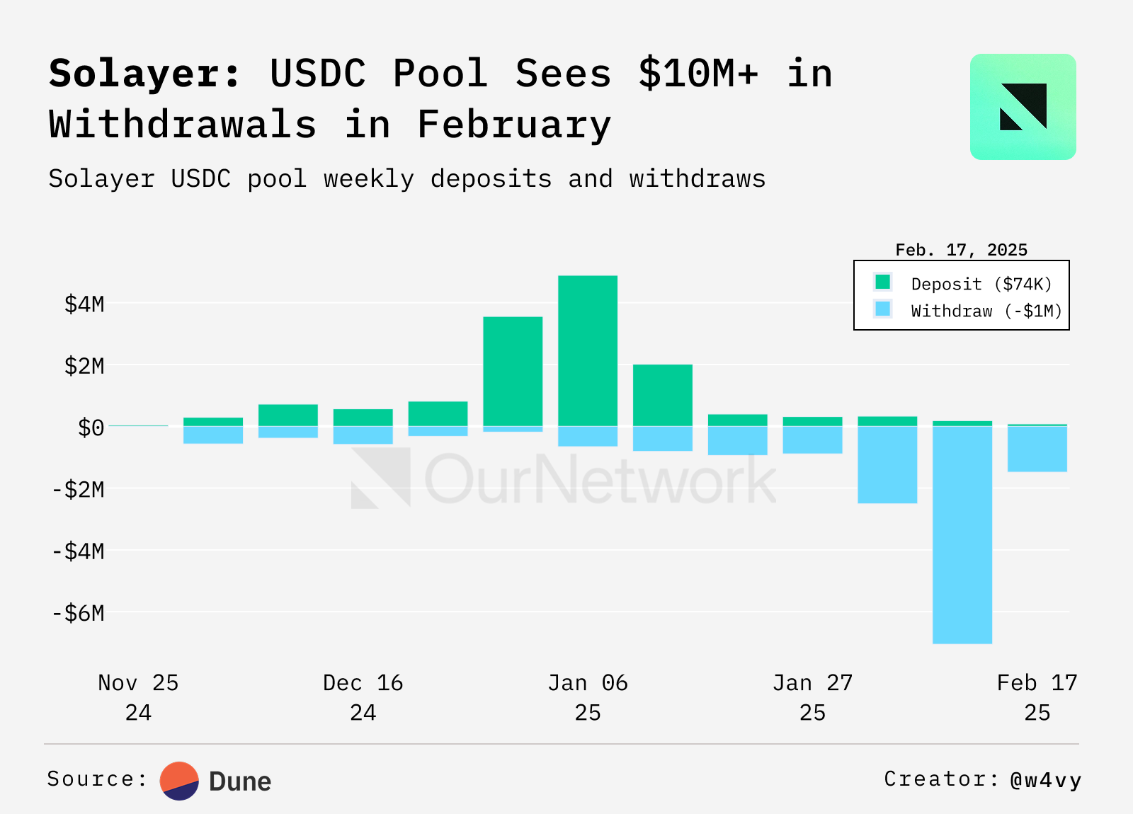 📈 Net Liquidity for the USDC pool on Solayer, a Restaking Protocol on Solana, Took a Hit in February