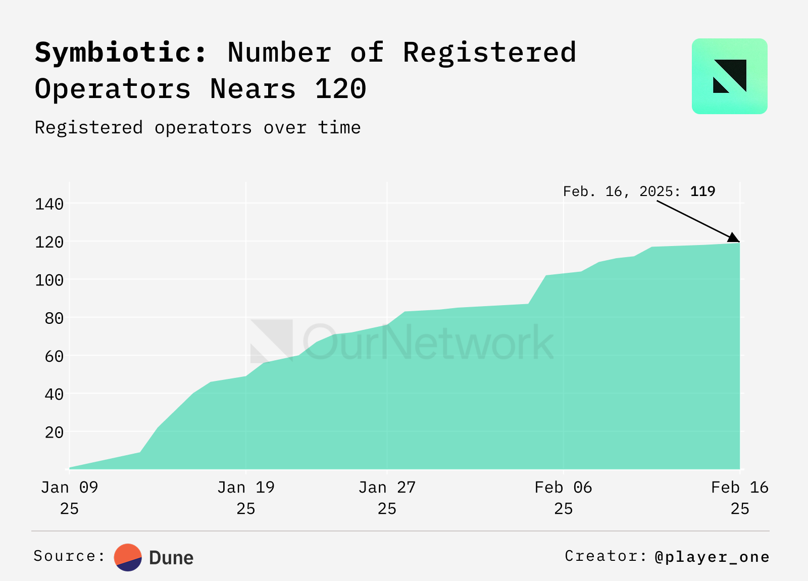 - Since January, Symbiotic has attracted 119 Operators, which are the entities running infrastructure for decentralized network within and outside of the Symbiotic ecosystem.