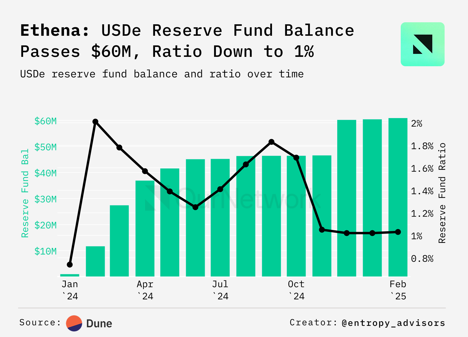 - While USDe adoption surged, its reserve fund grew from $46M in October to $50M in December, yet the reserve ratio fell from 1.92% to 0.84%. Now, post-Trump election, reserves hit $61M, but coverage remains low at 1.01%. Despite this, the peg holds at $1.0002, just 0.02% from $1.