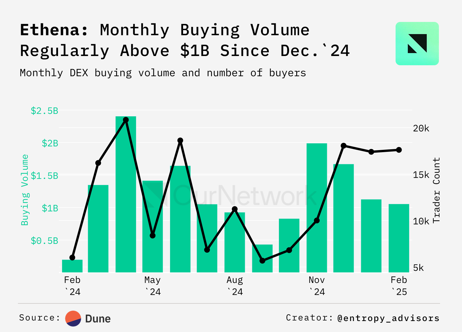 - A total of 18,505 traders bought in December, marking an increase of 8,044 new buyers from the previous month, despite slightly lower trading volume. This signals broader market adoption of USDe, even as volume dipped.