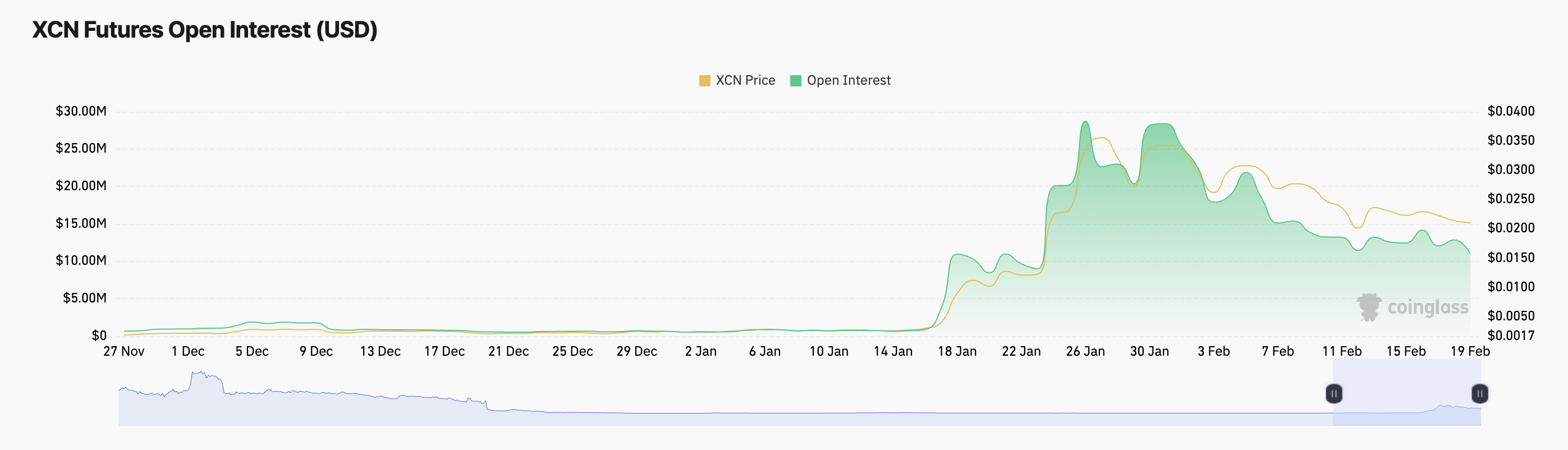Moreover, XCN’s plummeting open interest confirms the weakening demand for the altcoin. As of this writing, the metric stands at $11 million, falling 14% in the past 24 hours alone.