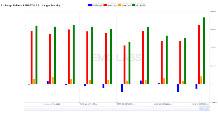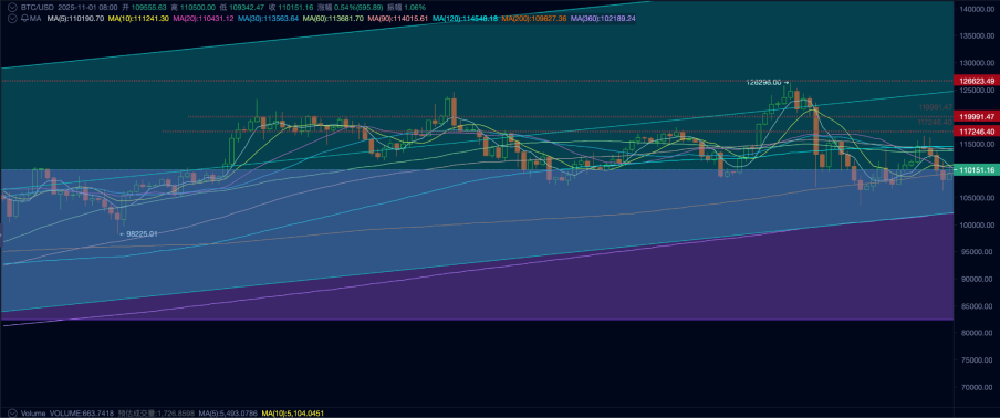 Subsequently, following the consensus reached between the US and China during the APEC meeting to suspend several confrontational measures, the Federal Reserve also lowered interest rates for the second time this year on October 29th. Coupled with better-than-expected Q3 earnings reports, US stocks hit a new monthly high. However, BTC's rebound was weak, still struggling around the 200-day moving average (the upper edge of the "Trump bottom" at $110,000), a key bull-bear dividing line, and by the end of the month, it had given back all the gains since July.