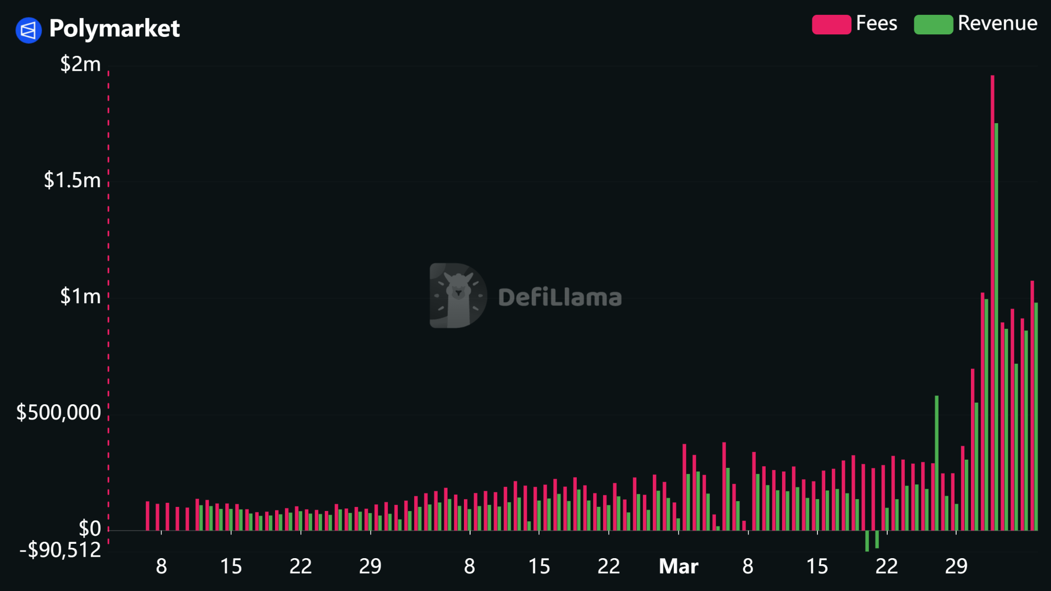 Interest in prediction markets has continued to grow, with users increasingly turning to these platforms to trade on real-world outcomes tied to politics, markets and policy. Industry data shows Polymarket’s fee revenue increasing in recent weeks after the platform expanded trading fees.