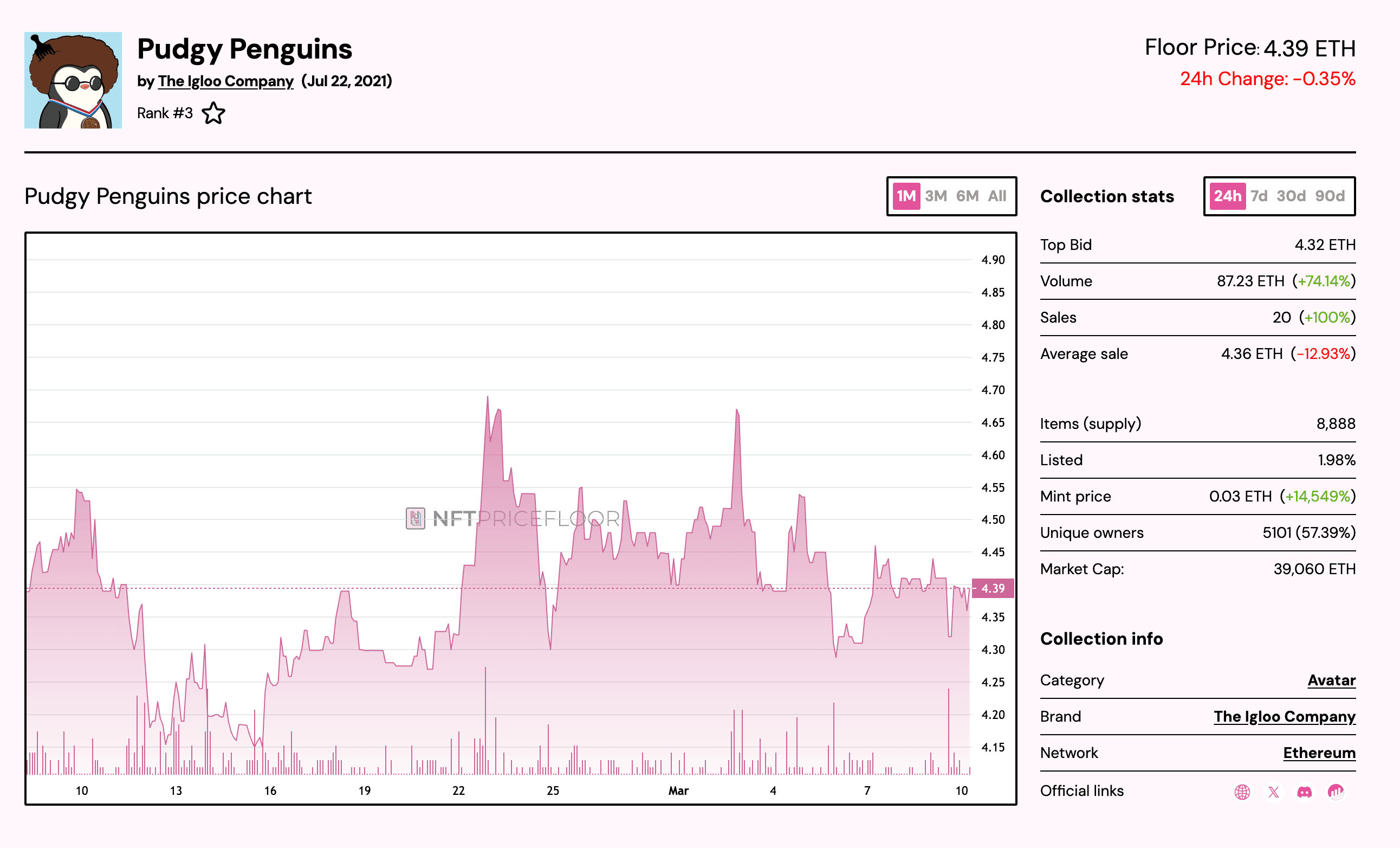 The PENGU token responded, jumping 9% on the day. Pudgy Penguin NFT floor prices held flat in ETH terms, though ether itself was up 5%, meaning the dollar-denominated floor rose with it.