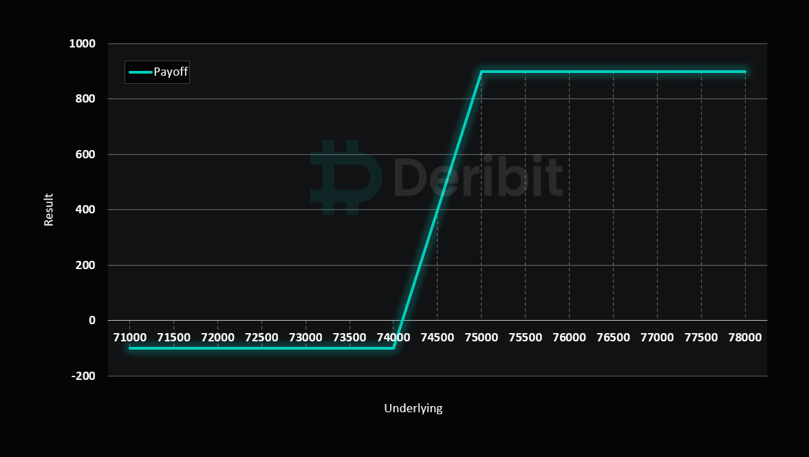 (OTM Call) Buy 1x BTC-30MAR24-$74,000-C @ $260(OTM Call) Sell 1x BTC-30MAR24-$75,000-C @ $160