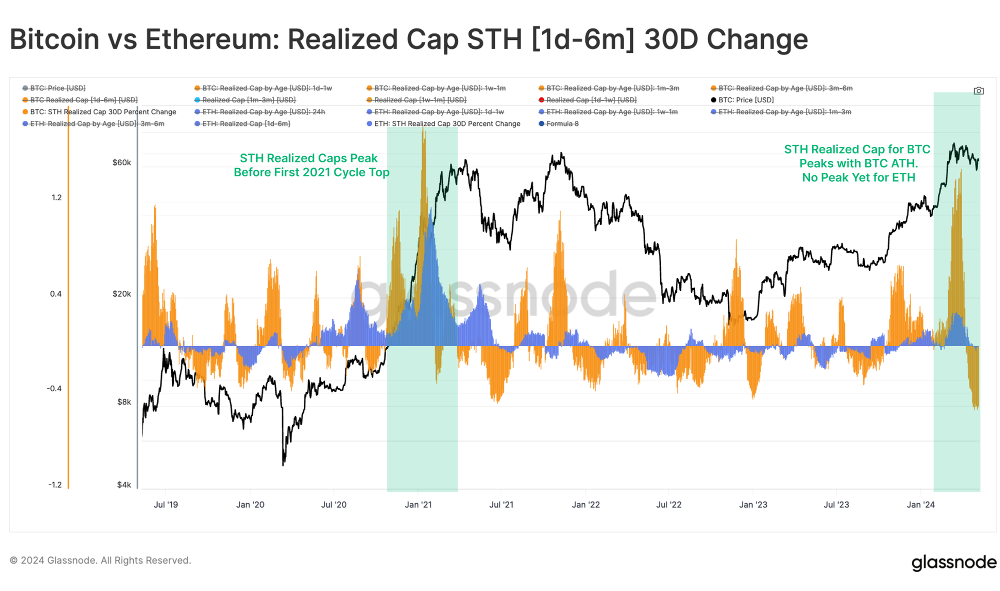 In this instance, we have broken down this metric by Short and Long-Term Holders. For both assets, the Short-Term Holder variant peaked before the 2021 cycle top across both assets. This year, the BTC short-term holder Realized Cap has peaked around the new all-time high, whilst the ETH metric has hardly moved higher.
