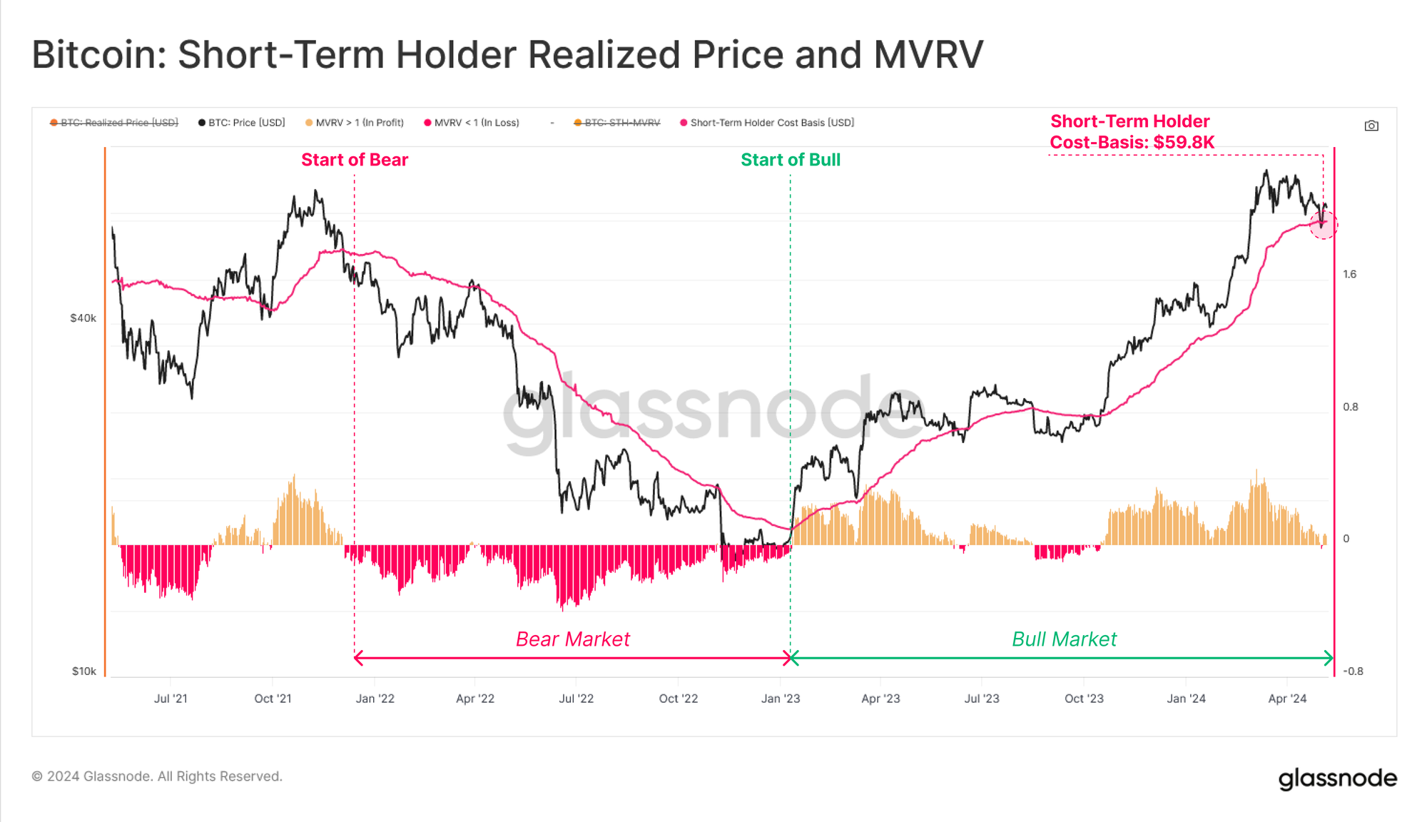 The Short-Term Holder cohort consists of investors who acquired their coins within the last 155 days, and are often considered a proxy for new investor demand. Typically, the average acquisition price of the cohort has acted as strong resistance during bearish trends, and a region of support during bullish trends.