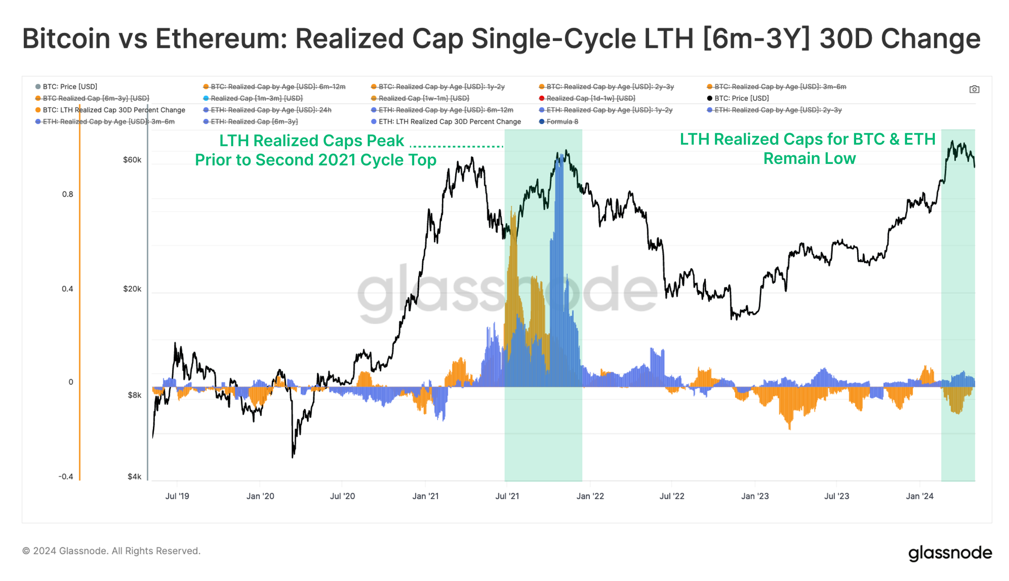 - Both assets still have a relatively low Realized Cap associated with Long-Term Holders, suggesting the market is likely within the early stages of a macro uptrend.