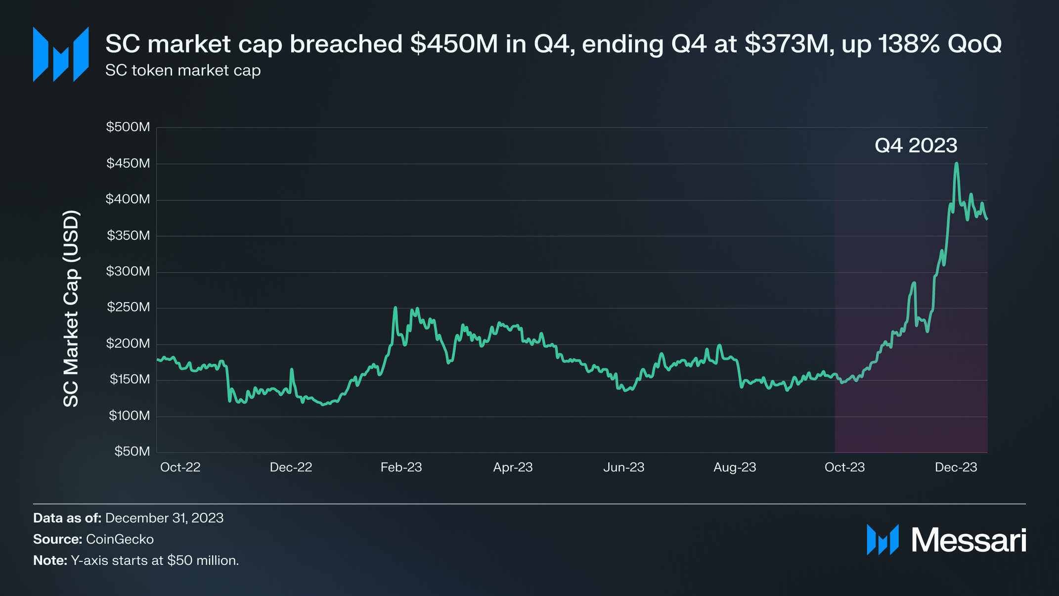 - Sia’s market cap grew 138% QoQ, ending the year at $373 million after reaching a $451 million quarterly high in mid-December.