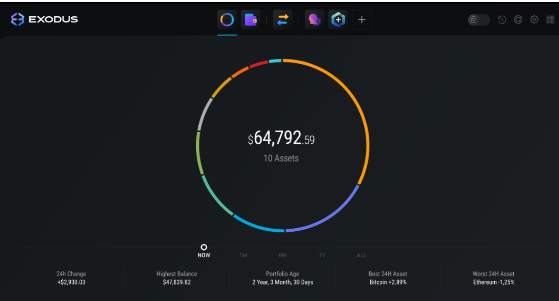 Multicurrency software wallet Exodus belongs to the Web3 generation of crypto wallets. In addition to standard wallet features, it supports swap exchange and DApps.