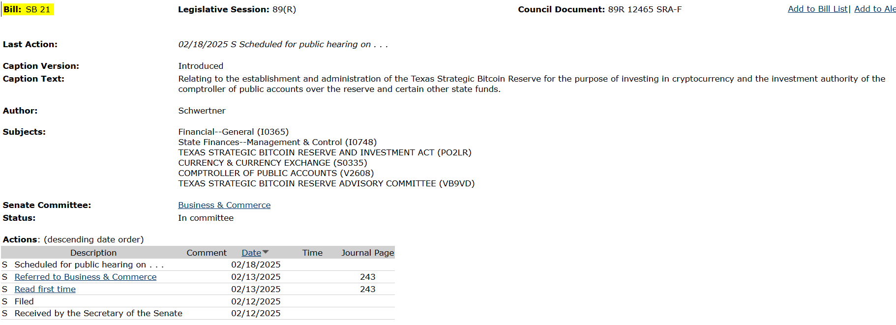 The Texas Senate is set to hold a public hearing on Feb. 18 to discuss the establishment of a Bitcoin reserve, but market analysts say the move may be largely symbolic unless the state announces an immediate investment plan.