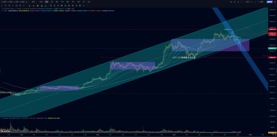 With the lower edge of the upward channel and the 360-day moving average effectively broken, BTC has technically entered a bear market. If, in the coming weeks, funds do not flow back sufficiently and selling pressure persists, making it difficult for the BTC price to return above key technical indicator levels and confirm a valid break below these levels on the weekly chart, then the current BTC bull market that began in 2022 will most likely have officially ended.