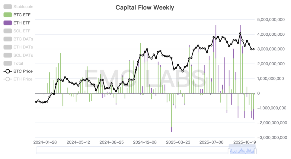 Among the major buyers this week, the BTC ETF channel has switched to selling. According to media reports, DATs companies Strategy and BMNR were still buying in the market this week, but their efforts alone were insufficient to sustain the gains. Ultimately, both BTC and ETH ended the week with significant declines.