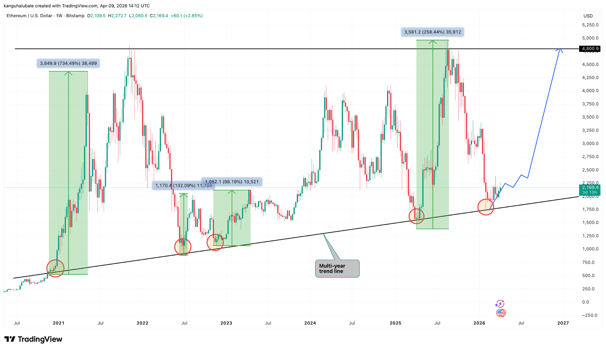 This level aligns with a multi-year trendline that has historically marked the bottom for ETH/USD, as seen in 2022 and in April 2025.