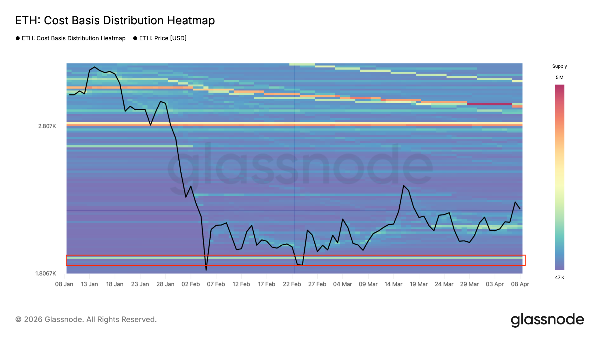 This is the area around $1,800, where investors acquired more than 1.35 million ETH, according to Glassnode’s cost basis distribution heatmap.