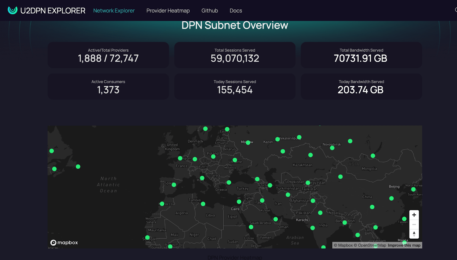 The U2UDPN is the core team's DPN product, a mobile-based decentralized VPN service built on the DPN subnet and available on both iOS and Android. Unlike traditional VPNs that rely on centralized servers, U2DPN uses a distributed network structure powered by individual bandwidth sharers, making it more resilient and secure by eliminating centralized points of attack. By leveraging unused internet bandwidth, U2DPN turns it into a valuable asset, allowing users to share and earn. Users can connect via a pay-as-you-go plan for flexible access to shared bandwidth. U2DPN boasts over 1,500 active consumers, 113,000 sessions served, and more than 69,000 GB of bandwidth shared.