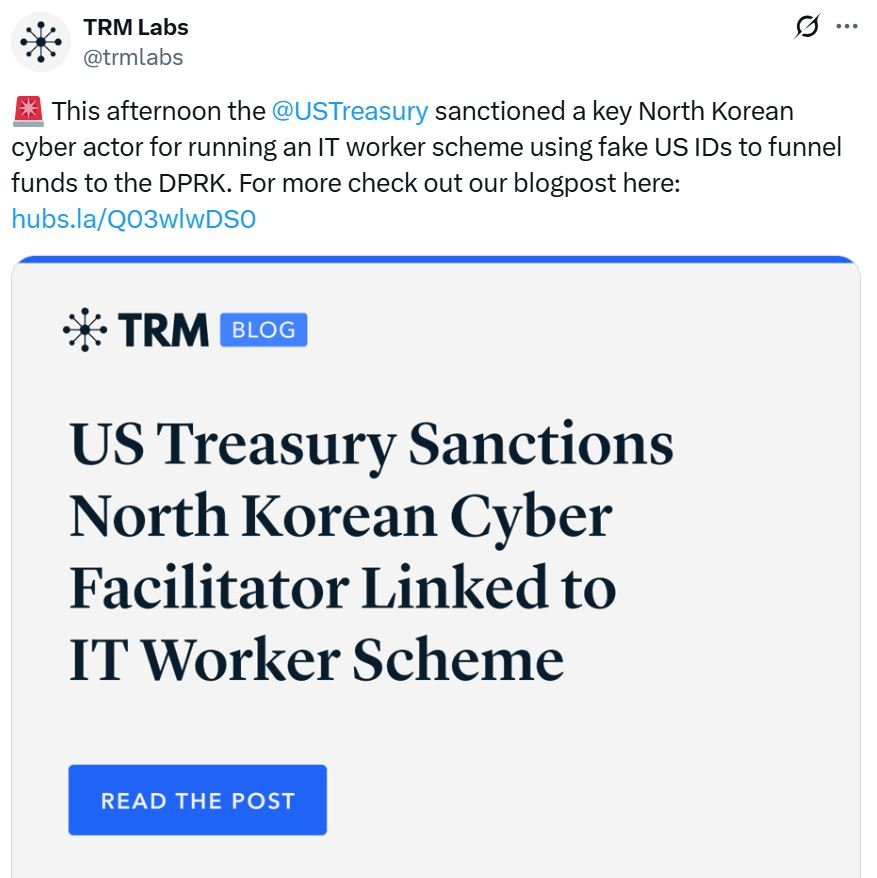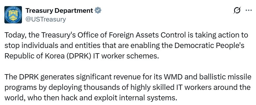 “Treasury remains committed to using all available tools to disrupt the Kim regime’s efforts to circumvent sanctions through its digital asset theft, attempted impersonation of Americans, and malicious cyber-attacks,” said Treasury Deputy Secretary Michael Faulkender.