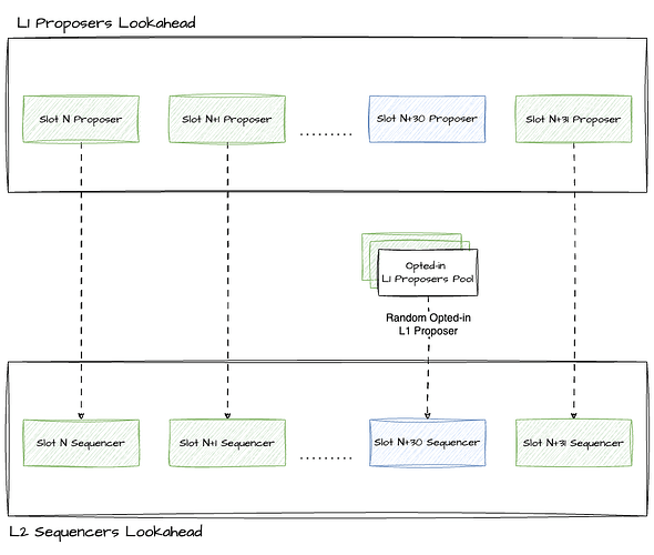 The design recognises that only a subset of the L1 proposers would opt-in to be L2 sequencer for the rollup. This nuance requires the mechanism to define the sequencer selection in the two possible scenarios: