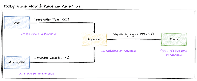 To ensure that the protocol is generating revenue and is not forced into altruism, a portion of the sequencing revenue is suggested to be captured by the rollup. The specific proportions and mechanics are design decisions of the rollup protocols themselves.
