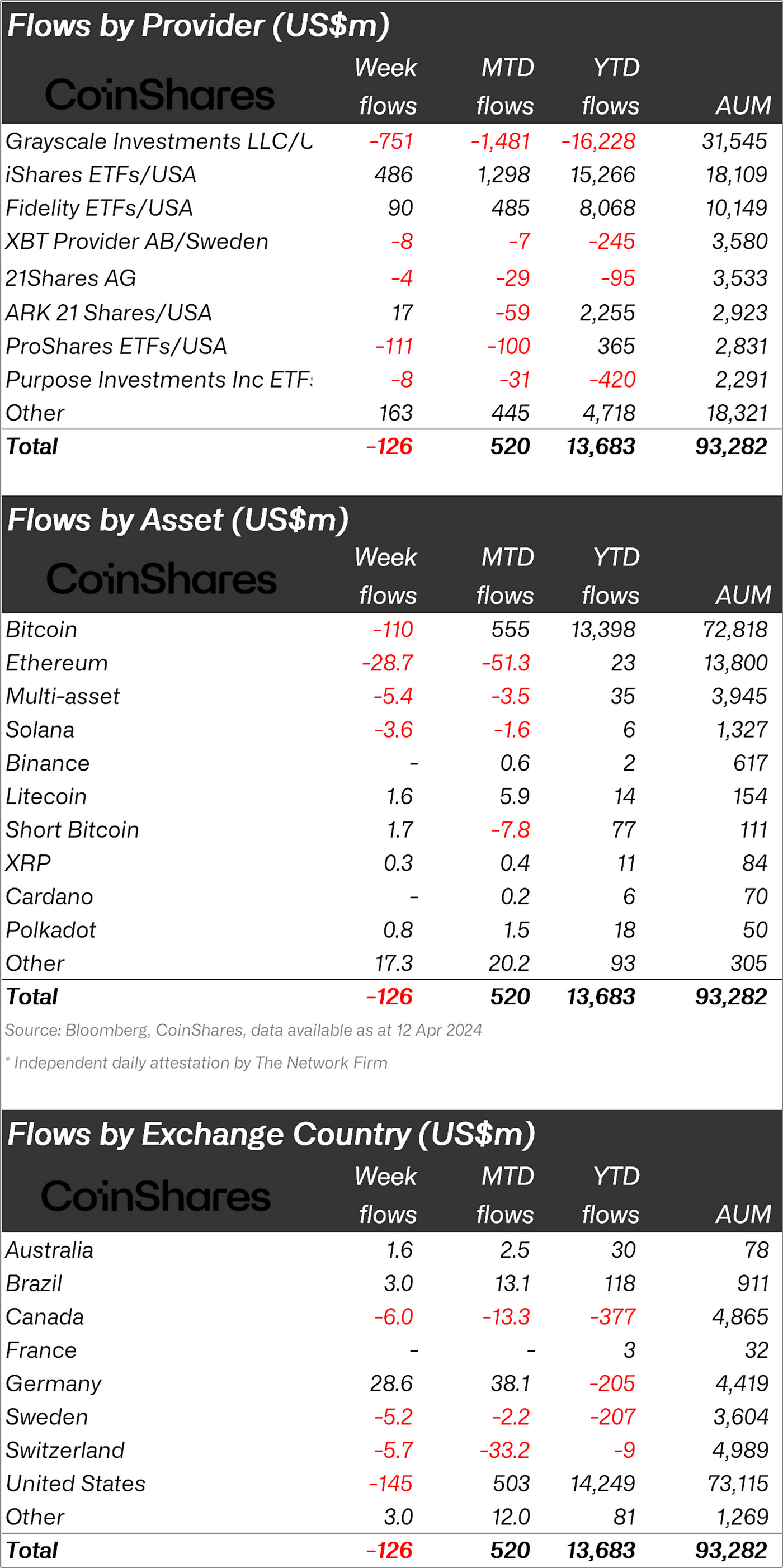 Minor outflows of US$126m highlight hesitancy amongst investors