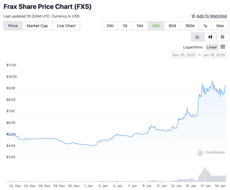 Frax Finance's Frax Share (FXS) started out as a stablecoin (FRAX) and have continued to build its own AMM dex (Fraxswap), money market (Fraxlend), inflation-pegged stablecoin (Frax Price Index), and have now launched an ETH liquid staking service to turn ETH into frxETH, a ETH LSD.