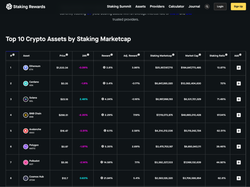 According to StakingRewards, only 13.87% of the circulating ETH supply is currently staked, which is significantly lower than the rest of the other PoS tokens. This is due to the risks and issues of staking ETH as there is no guarantee in the timeline and no way to unstake if you bond until the Shanghai upgrade is over.