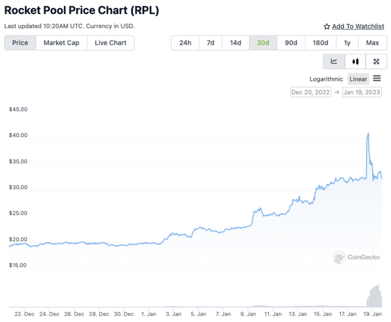 RPL keeps the decentralized administration system running smoothly, and it has also recently been listed on Binance for easier access on 18 January 2023, which also boosted its price by 33%.