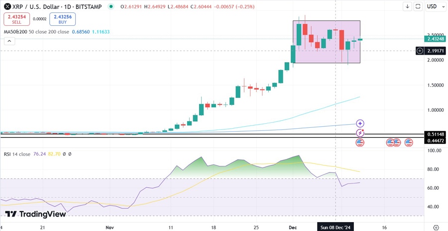 Technically, XRP prices are locked in a consolidation between the $1.9 support and $2.8 resistance levels. The price has remained within this range since December 1. In the short term, these levels will determine whether the price will rise or drop. The Relative Strength Indicator (RSI) also shows that the price has not reached the overbought zone.