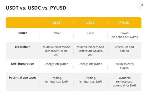 4. USDT vs. USDC vs. PYUSD: Key differences