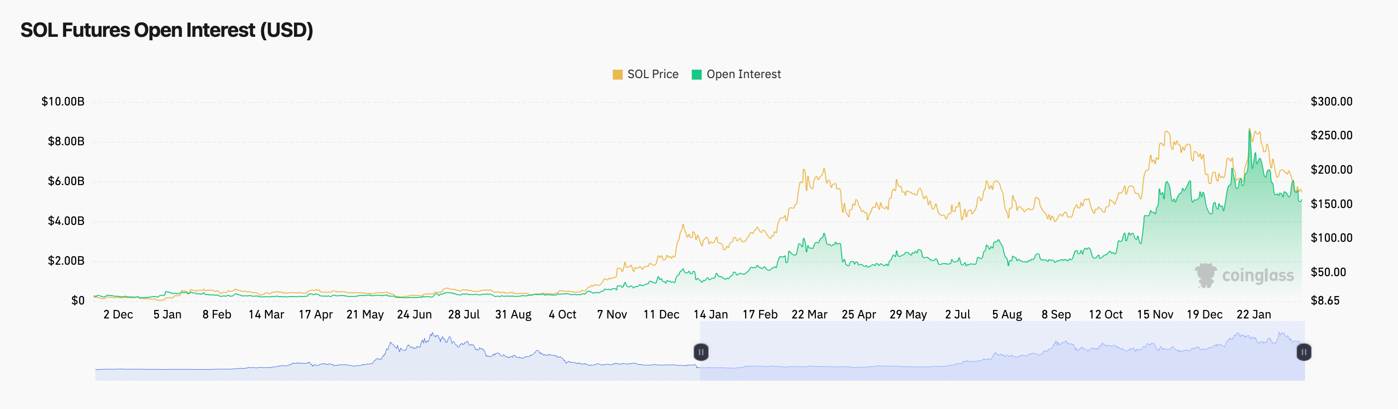 - Solana’s OI in the futures market has dripped from its local peak of $8.57 billion on Jan. 17 to $5.11 billion as of Feb. 24.